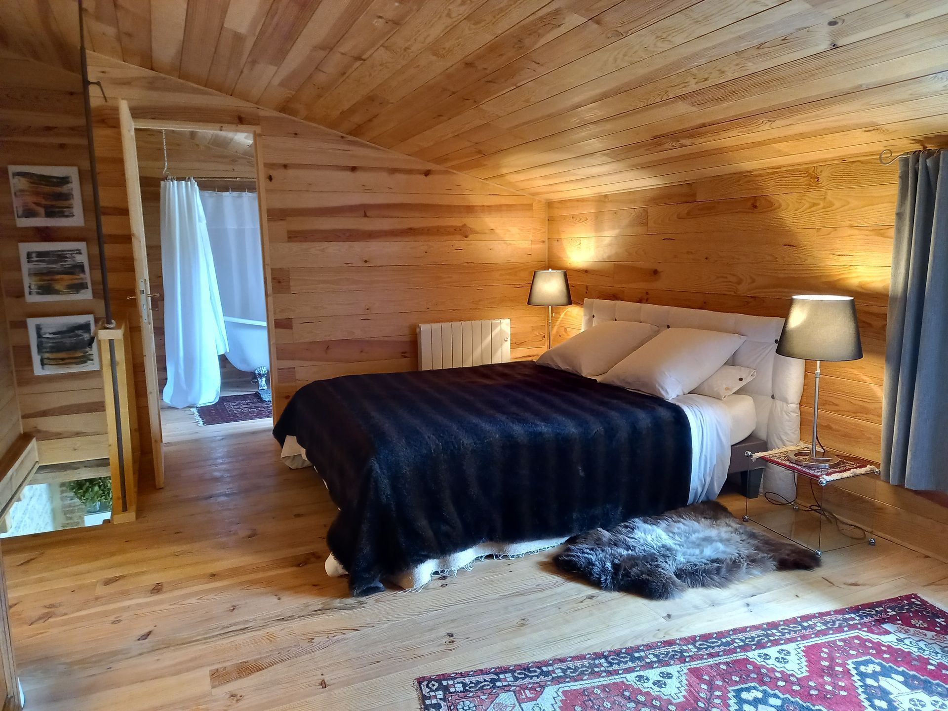 The workshop bedroom is located upstairs in the independent gîte next to the main house.